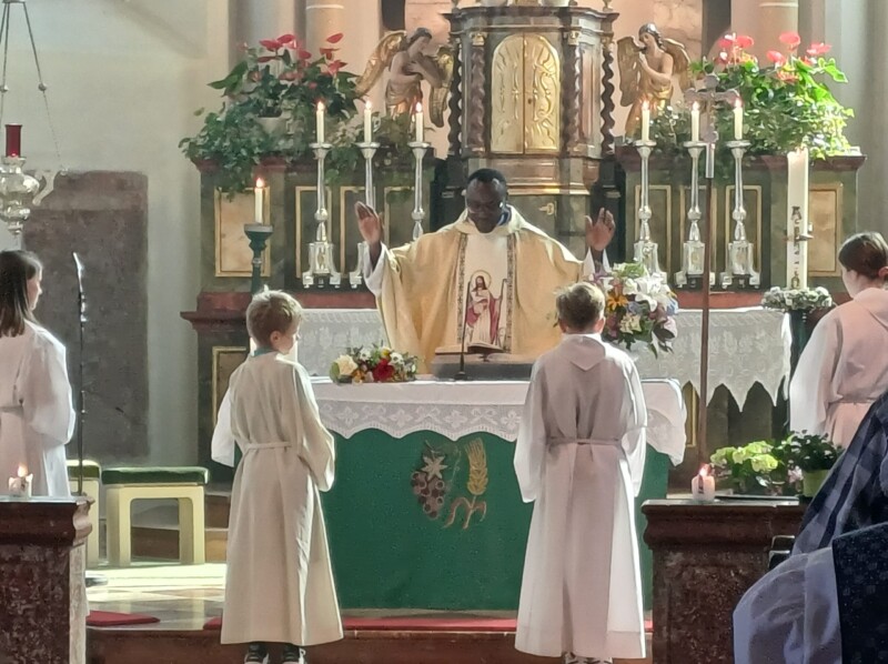 Dieses Jahr feierten wir nicht nur unser Patrozinium am 15. August – Maria Aufnahme in den Himmel – mit der schon traditionellen Kräuterweihe, sondern schweren Herzens auch Abschied von unserem Herrn Pfarrer Alphonse Fahin und unserem Pastoralassistent Herrn Etienne Nary.